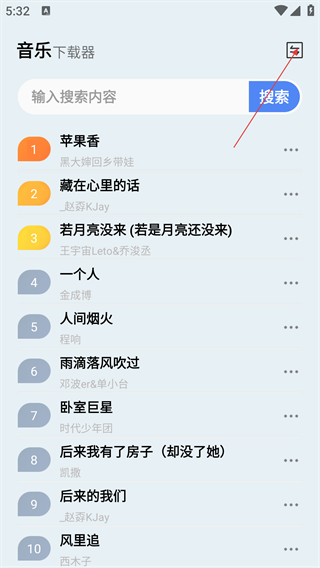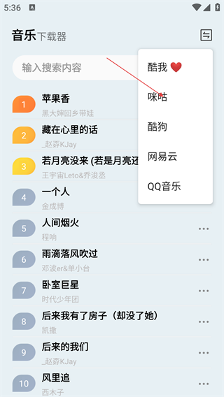 2、在音乐下载器主界面,点击右上角切换平台图标,展开音乐平台列表。