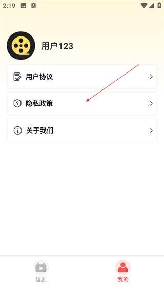3、在【我的】页面,点击【隐私政策】,可查看《淘金剧场隐私政策》的详细内容,了解个人信息保护等相关条款。