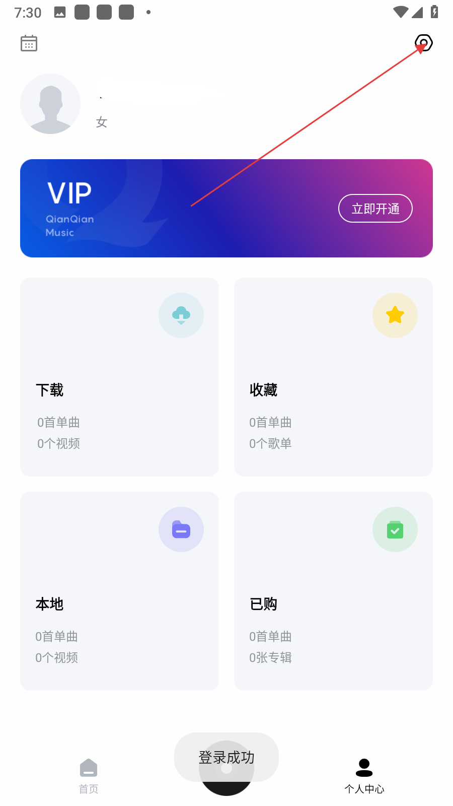 1、在首页点击【个人中心】,进入个人中心页面,可看到设置入口。