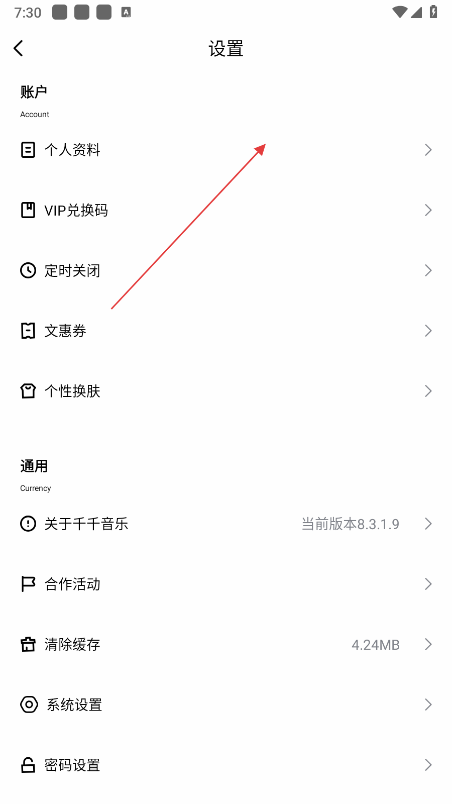 2、在个人中心页面点击右上角设置图标,进入设置页面,可看到个人资料等设置项。