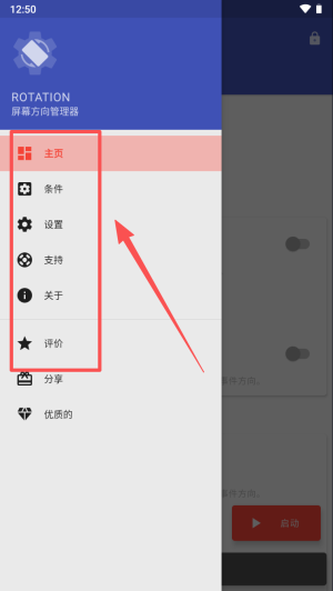 4、返回主页点“启动”完成配置,日后通过条件或快捷图标一键切横竖屏。