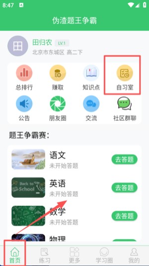 2.答题竞技模式,争夺题王称号。