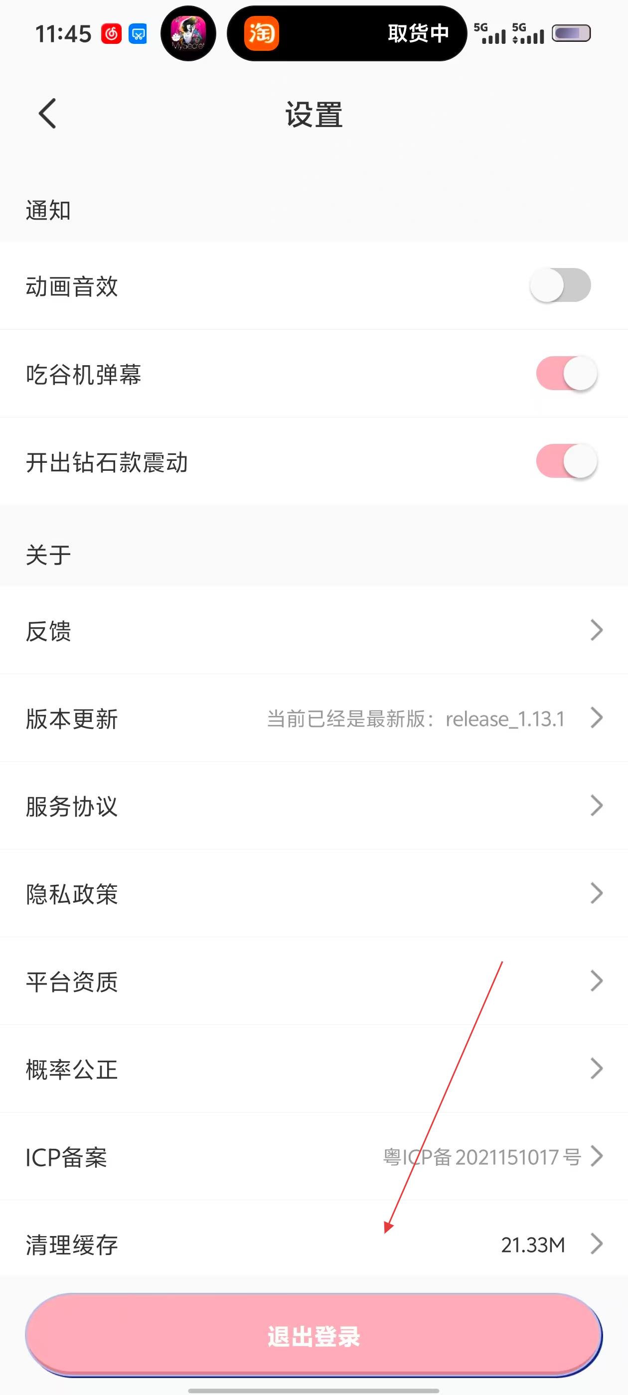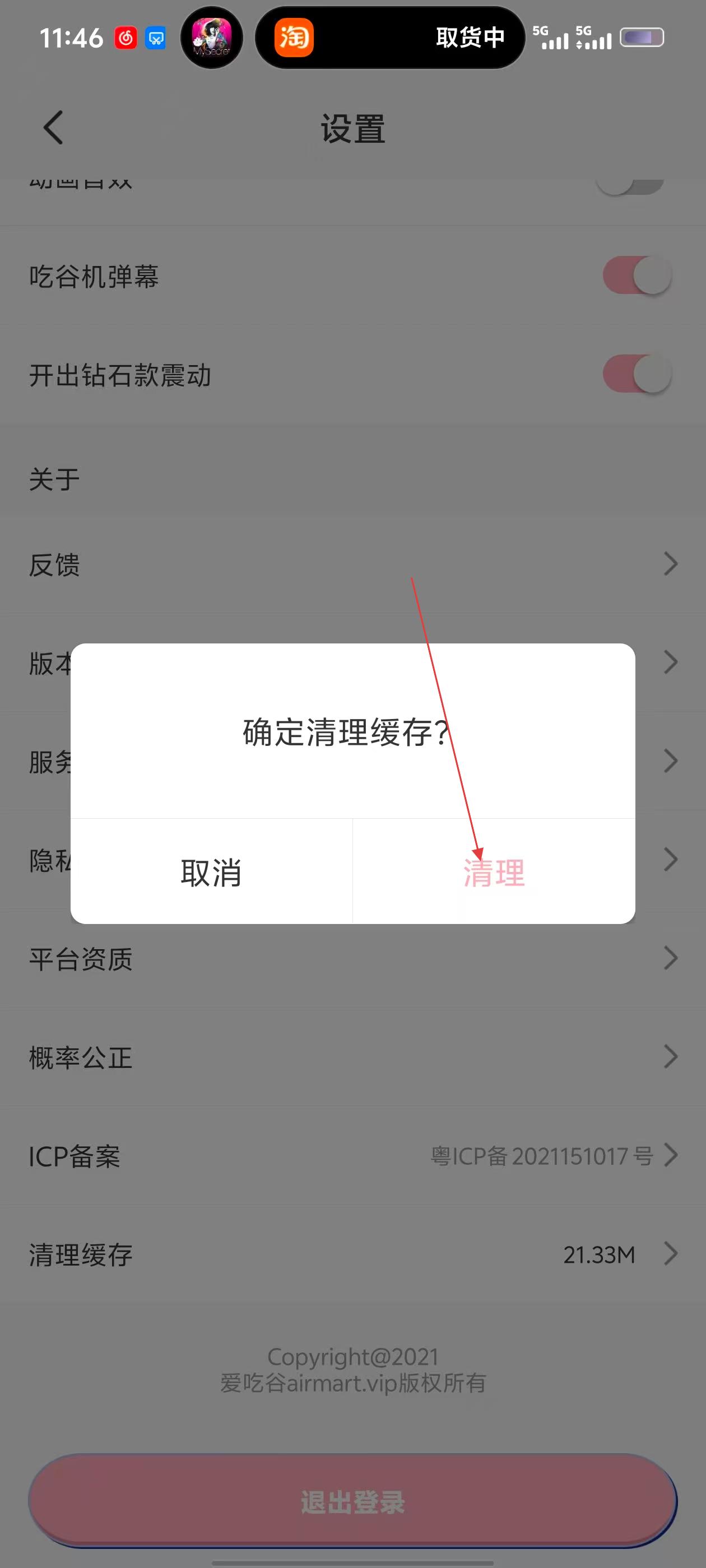 3、在设置界面,点击【清理缓存】,可进入缓存清理确认界面,准备清理软件缓存。