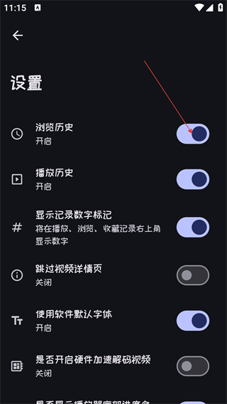 3、进入设置页面,可开启或关闭【浏览历史】【播放历史】等功能,如开启浏览历史便于回顾看过的动漫。