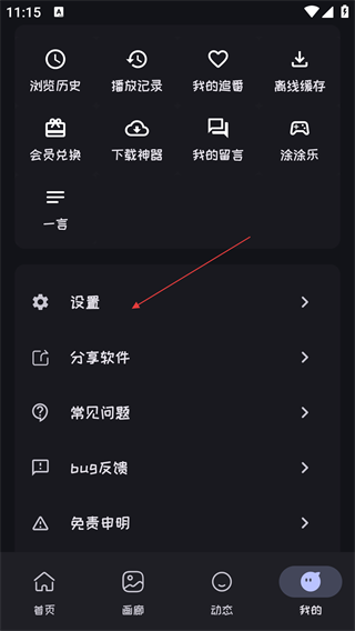 2、进入【我的】界面,找到【设置】入口,可对软件功能进行个性化配置。