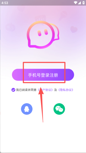 1、在登录注册页面,点击 “手机号登录注册”,并勾选同意用户协议及隐私协议。