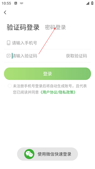 3、在登录界面,点击【密码登录】选项,切换至密码登录模式。