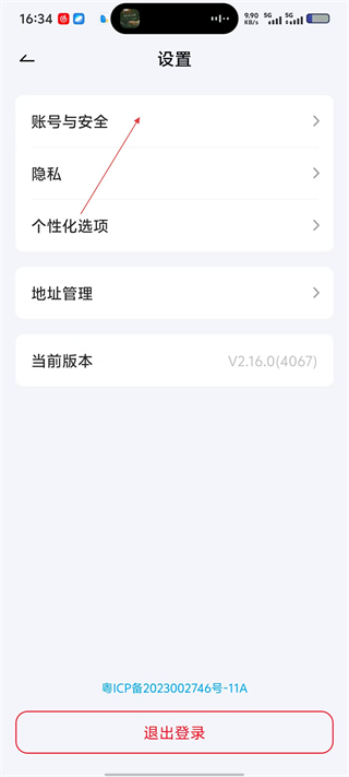 3、在设置界面中,选择【账号与安全】选项,可进入账号相关的信息管理页面,处理账号安全事项。