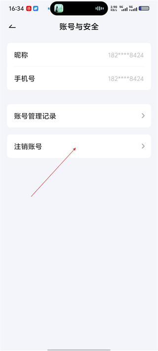4、进入【账号与安全】页面后,可查看昵称、手机号信息,也能通过【注销账号】选项完成账号注销操作。