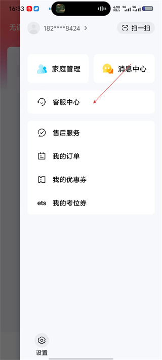 2、在功能侧边栏中,点击【客服中心】选项,可进入客服咨询界面,获取服务支持。