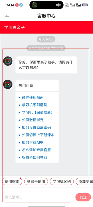 3、进入客服中心后,可查看【热门问题】列表,选择对应的问题(如硬件使用指南)快速获取解答。