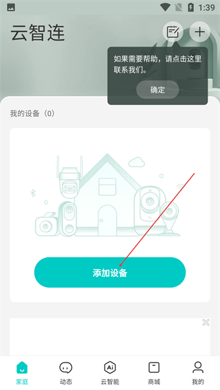 1、在应用首页(家庭页面),点击【添加设备】按钮,触发系统权限申请弹窗。