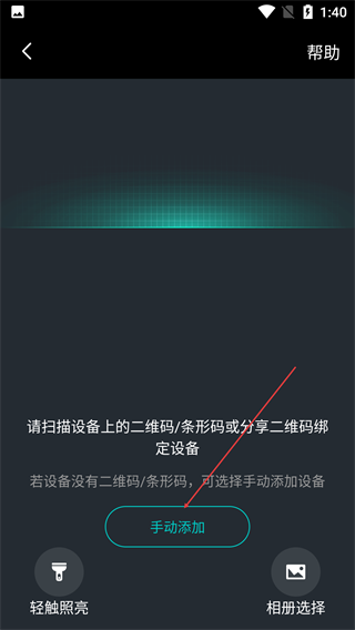 3、进入设备绑定页面后,选择【手动添加】选项,进入添加设备界面。