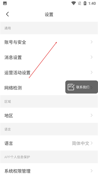 3、在设置页,选择【账号与安全】选项,进入账号安全配置页面。