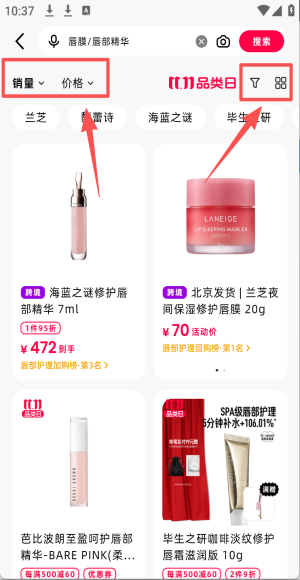 4、在商品列表页,可通过“销量”或“价格”进行排序。