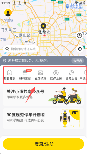 2、在地图界面,点击“登录/注册”按钮,开始注册流程。