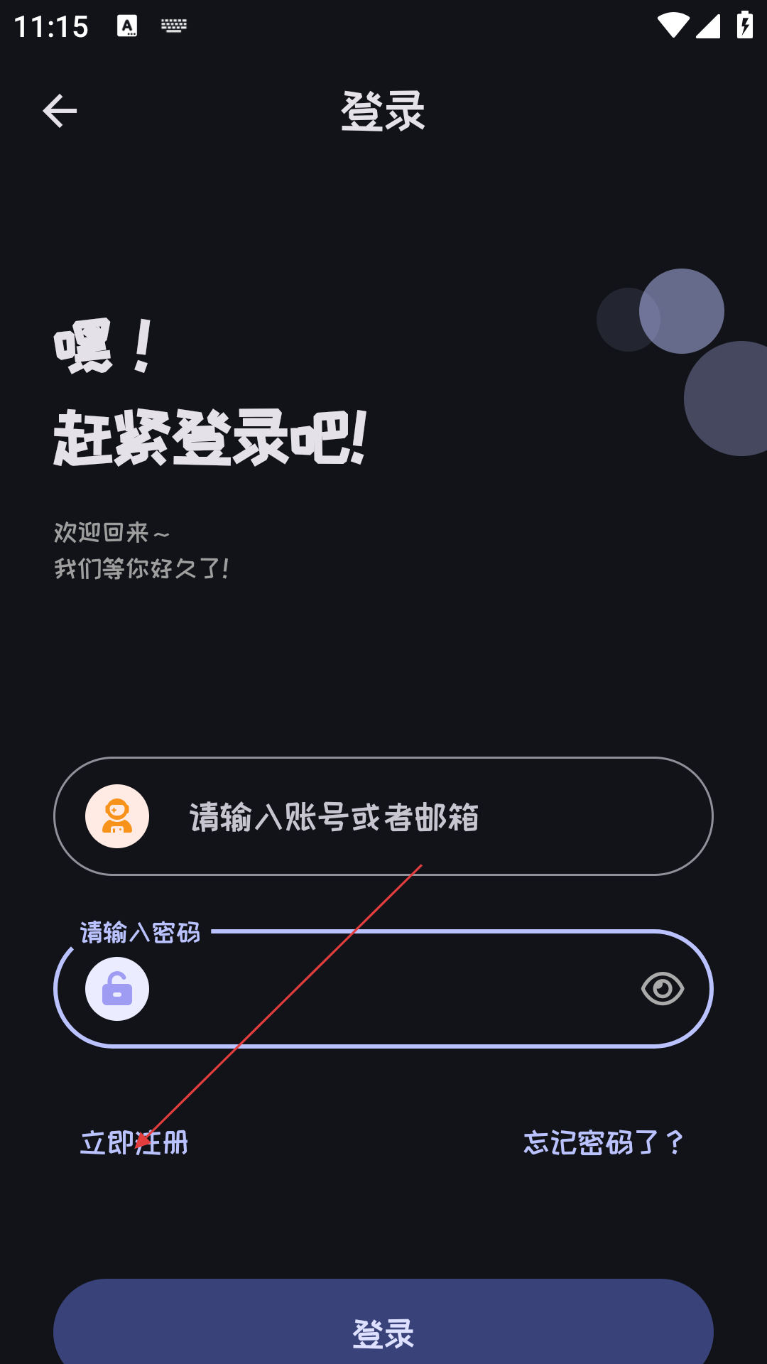 3、在登录页面,可输入账号邮箱和密码登录,若未注册可点击【立即注册】进入注册流程。