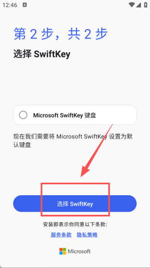 1、启用 Microsoft SwiftKey 时,点击前往设置按钮,在设置中开启其键盘功能。