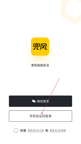 2、在登录选择页,选择【手机验证码登录】选项,进入“登录兜风”页面。