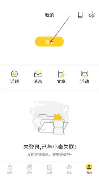 2、在【我的】页面,点击醒目的黄色【登录】按钮,开启账号登录流程,以便使用更多功能。