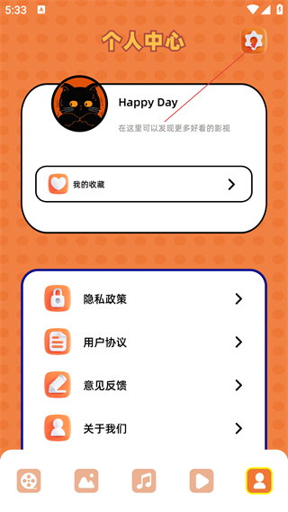 2、进入个人中心界面后,可点击设置按钮进入设置界面。