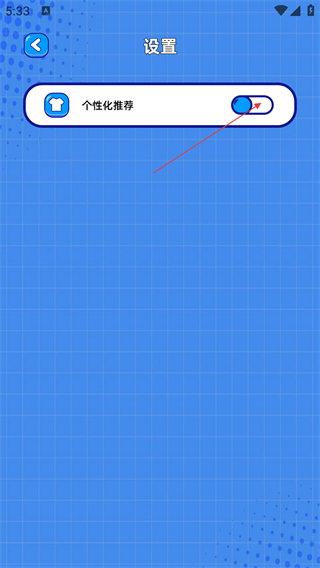 3、在设置界面,可找到【个性化推荐】选项,点击开关可关闭个性化推荐功能。