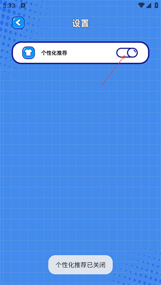 4、关闭个性化推荐后,设置界面中该选项开关变为关闭状态,可减少个性化内容推荐。