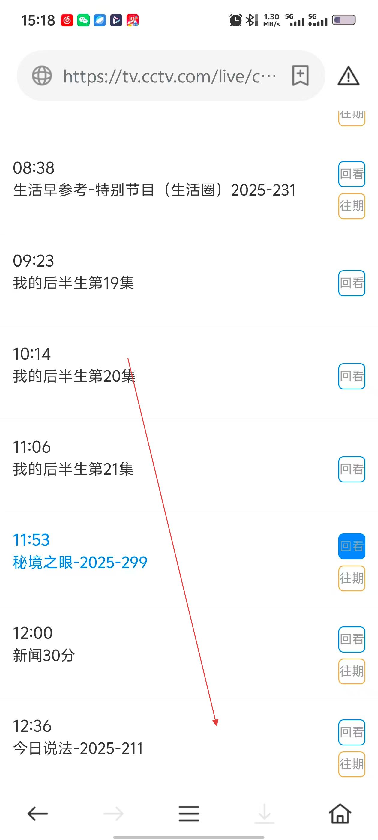 3、点击所选频道后,可查看该频道的节目回看列表,选择具体节目进行观看。