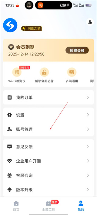 2、在个人中心页面,点击【账号管理】选项,进入账号管理页面。