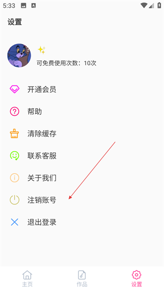 3、在设置界面中,选择【注销账号】选项,触发注销确认弹窗。