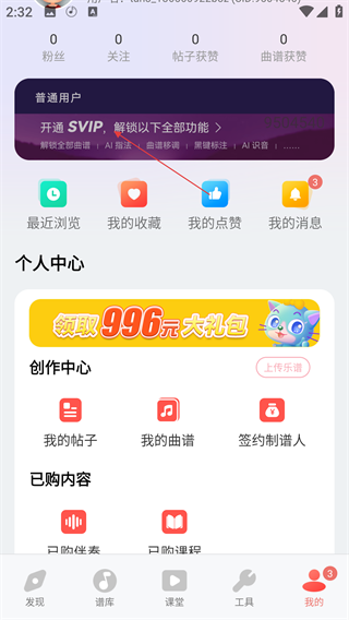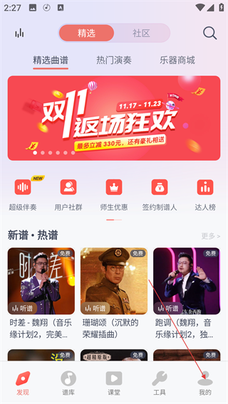 1、进入弹琴吧APP后,点击右下角【我的】,进入个人中心页。