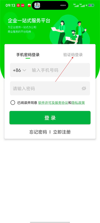 3、在登录界面,可切换至【验证码登录】选项,也可选择【手机密码登录】,输入对应信息完成登录准备。