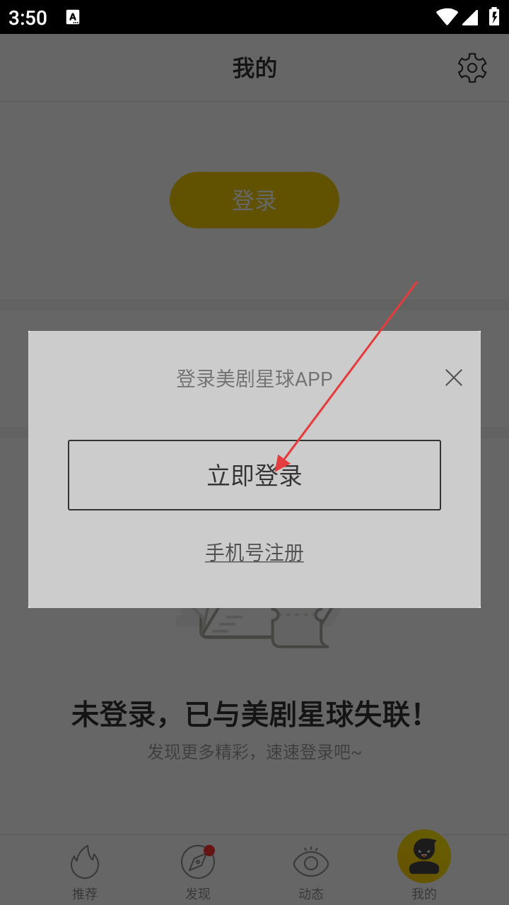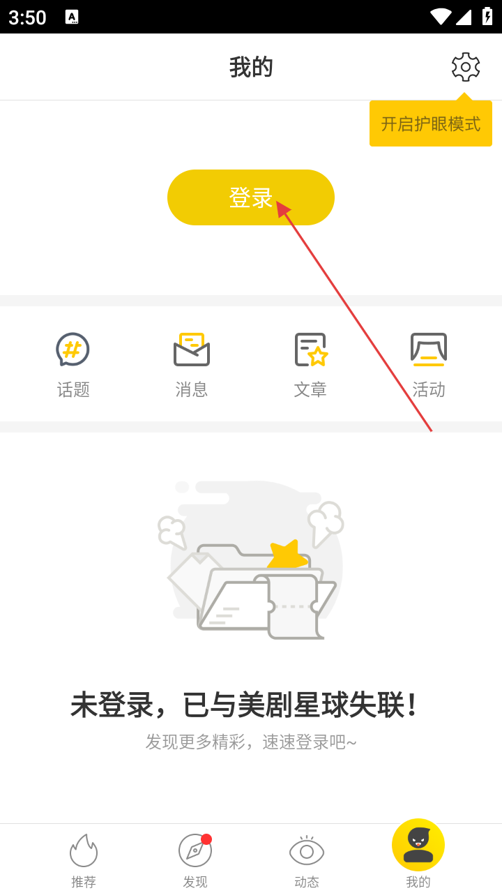 1、打开美剧星球APP后,点击右下角【我的】,进入个人中心页面,开启登录流程。