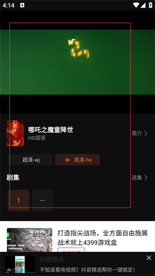 3、进入【哪吒之魔童降世】播放页面后,可点击【高清-fw】选项切换画质,根据网络情况选择合适清晰度提升观影体验。