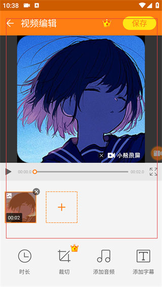 4、进入视频编辑页,使用【时长】【裁切】等工具编辑,完成后点击【保存】导出编辑结果。