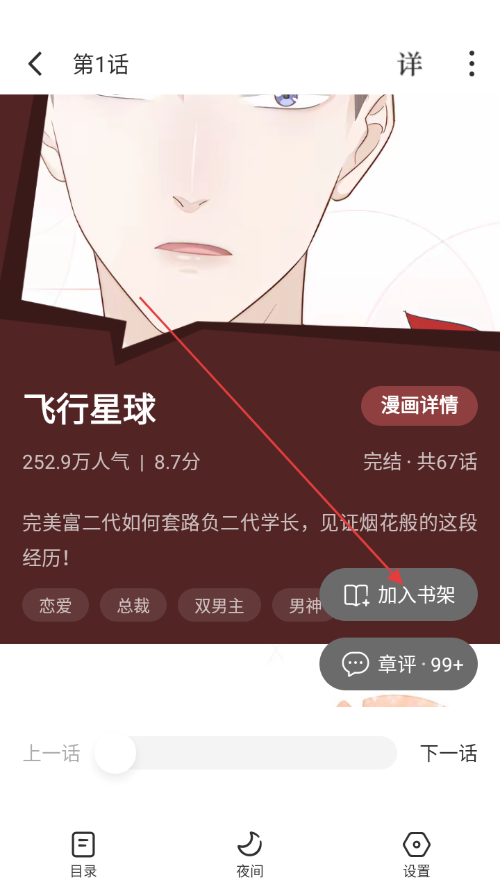 4、阅读漫画时,若想后续继续看,可点击【加入书架】,方便下次快速找到该漫画。