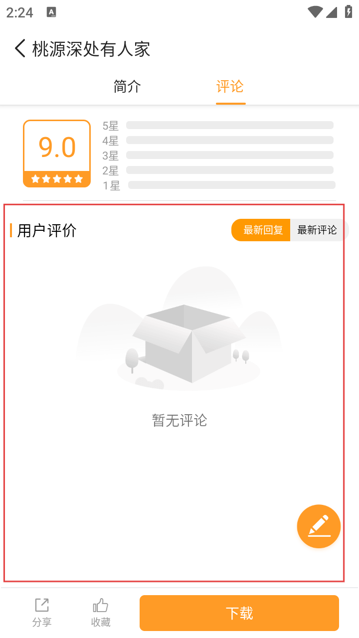 4、在评论板块,可查看用户评价情况,若想发布评论,可点击右下角编辑按钮进行操作。