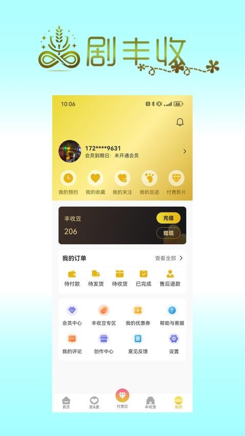 5、变现管理:提供丰收豆充值、提现、兑换等功能,支持与微信、支付宝等第三方支付平台绑定。