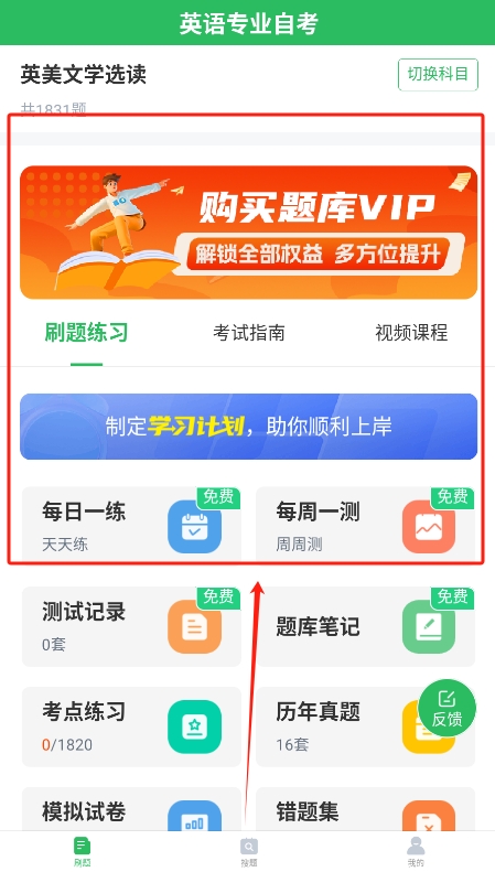 3、根据需要选择不同的刷题模式,如专项训练或模拟考试,以便加强特定领域的英语技能。