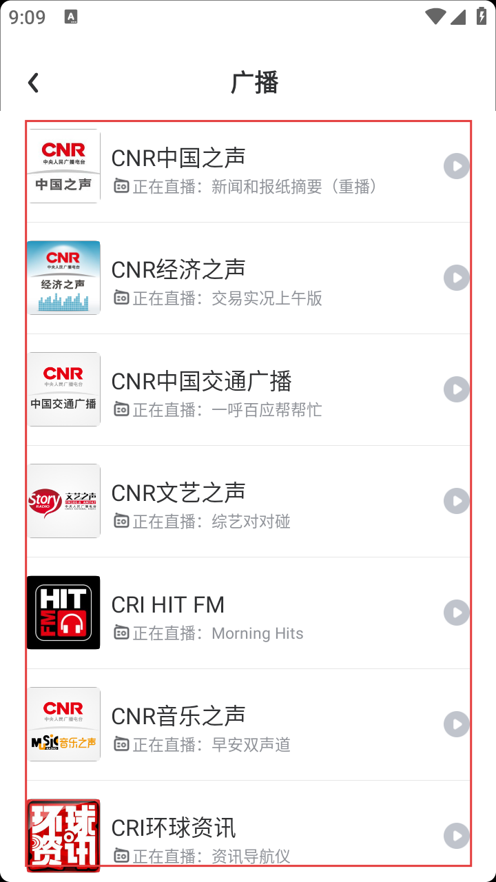 3、在广播频道列表页面,可选择【CNR中国之声】【CNR经济之声】等广播频道。