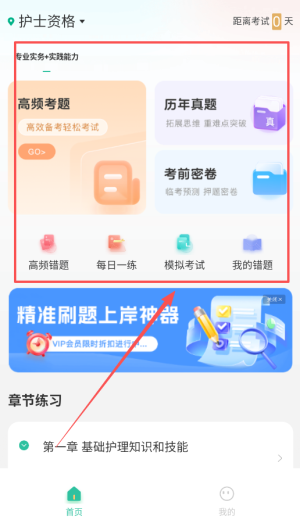2、接着,用户可以浏览丰富的题库资源,包括高频考题和历年真题,选择章节练习或模拟考试,针对性地巩固各个知识点。