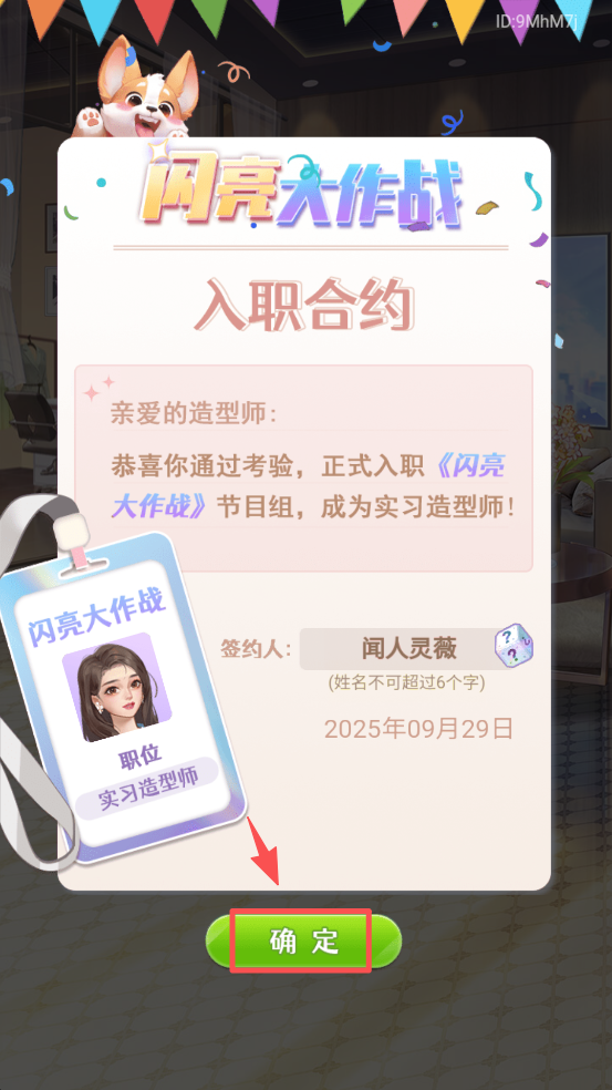 4、阅读入职合同,点击“确定”按钮,正式开启游戏之旅。