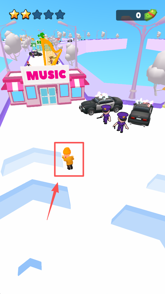 3、避开障碍物,在前进过程中,注意避开警察和其他障碍物,以免游戏结束。