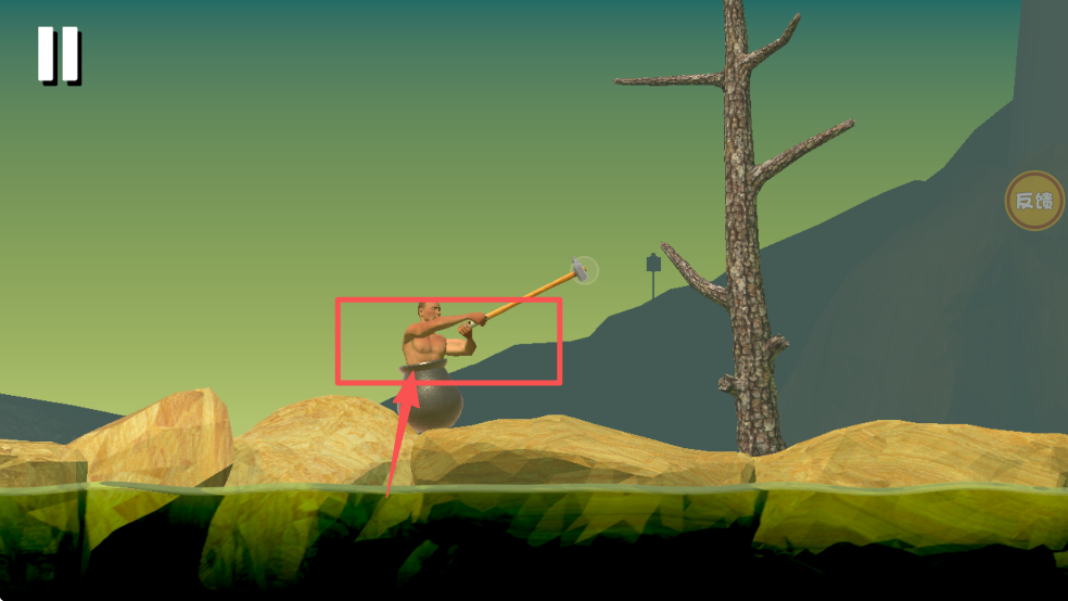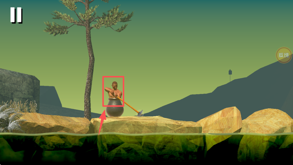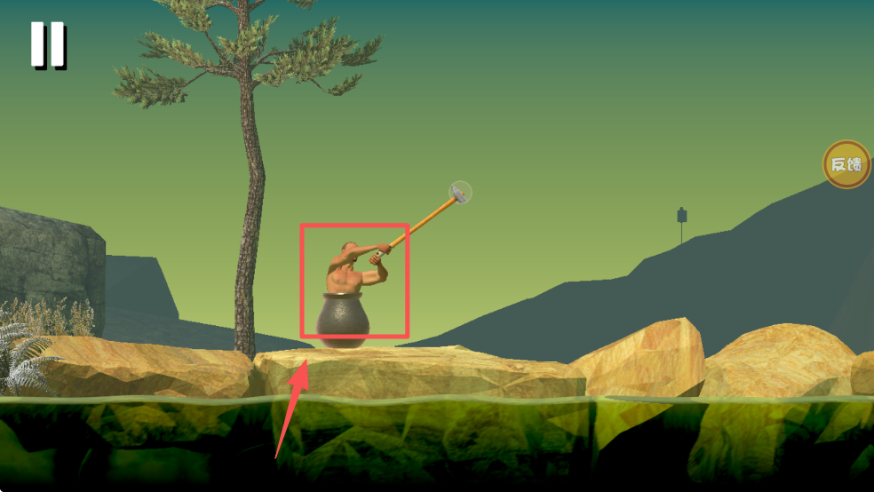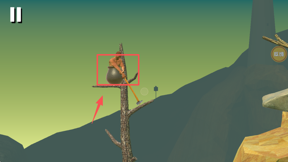3、再次点击小人,引导他爬到树上,寻找新的过河方法。