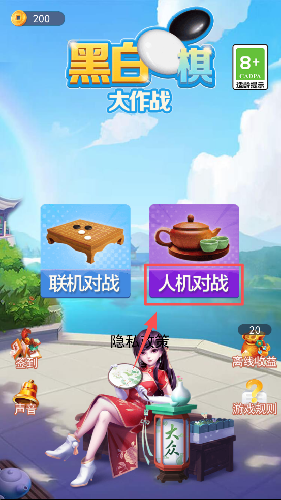 2、在游戏主界面,选择“人机对战”或“联机对战”模式,开始你的对弈。