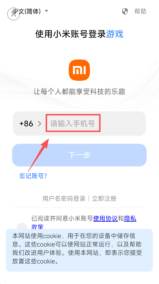 4、输入你的手机号码,点击“下一步”,完成账号登录并进入游戏。