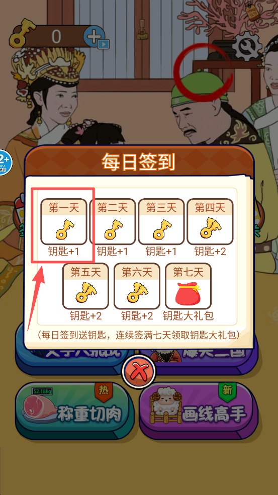 1、点击“每日签到”查看奖励,连续签到七天可领取钥匙大礼包。