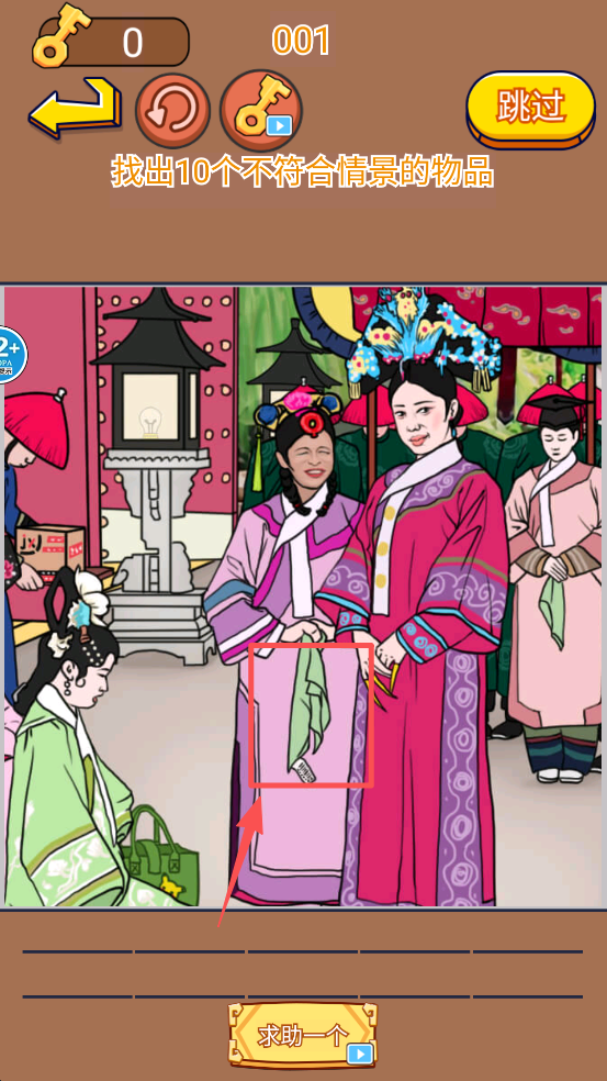 4、仔细观察图中人物,找出并点击不符合情景的物品完成关卡。