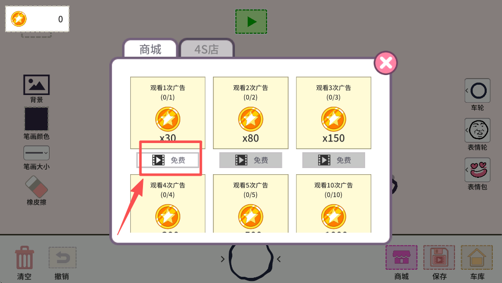 4、在商城中,你可以通过观看广告免费获取星星,这些星星可以用来解锁更多的游戏内容。