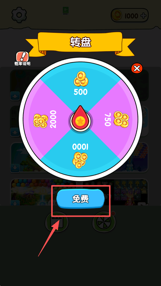 4、点击“免费”按钮,参与转盘抽奖,有机会获得额外奖励。